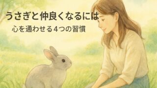 うさぎは、自分から近づくタイミングをとても大切にする動物です。焦らず、ただ同じ空間にそっと座り、うさぎが近づいてくれるのを待つ──それだけで信頼がぐっと深まります。